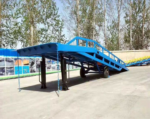 棗莊登車橋-集裝箱裝卸過橋-裝車斜坡登高裝貨叉車液壓登車橋-移動(dòng)式液壓登車橋應(yīng)用于無裝卸設(shè)備的貨臺(tái)及流動(dòng)裝卸場(chǎng)所,是與叉車配合使用的貨物裝卸輔助設(shè)備。借助該設(shè)備,叉車能直接駛?cè)肫囓噹麅?nèi)部進(jìn)行批量裝卸作業(yè)。只需單人操作,不需要?jiǎng)恿﹄娫矗纯蓪?shí)物的安全快速裝卸。即可使您減輕勞動(dòng)強(qiáng)度,又能成倍提高裝卸作業(yè)效率,加快物料流通速度,獲取更大經(jīng)濟(jì)效.臺(tái)面使用特制的菱形網(wǎng)絡(luò)板有可靠的強(qiáng)度,能保證長期使用而。它的菱形網(wǎng)狀結(jié)構(gòu),充分保證了防滑性能,使叉車有更好的爬坡性和可操作性。即使在雨、雪罐子。仍能保證正常使用。
